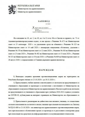 „Последен детайл - с тази заповед се отменя предишната, само от един ден по-рано. Единствената разлика между двете заповеди е в забраната за планов прием в болниците. Ще обясни ли министърът на здравеопазването какво толкова се случи за един ден? Всъщност, министърът е видимо компетентен и грамотен лекар. Но ако изпълнява нарежданията на безграмотни и нагли некадърници, както е най-вероятно, това не променя констатацията, че отговорността си е изцяло негова", предупреди той.