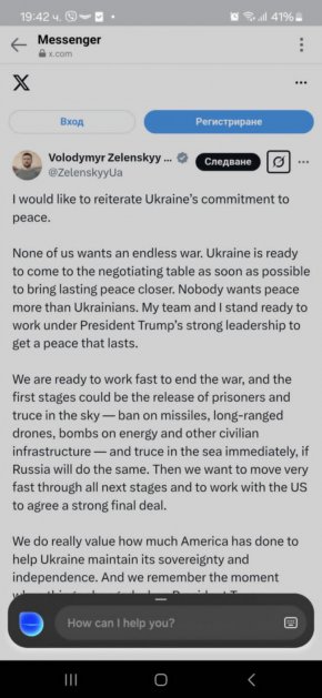 Туитът е резултат от пореден негов разговор с британския премиер Стармър, но пропусна най-важното нещо: лично извинение към президента Тръмп. В текста му в Х по-скоро се има предвид взаимна вина за случилото се в петък, което прави нещата още по-жалки.