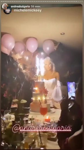 В своята Инстаграм страница, под формата на истории, тя показа мястото, на което се състоя събитието. Помещението бе богато декорирано както с множество балони във различни цветове и форми, като част от тях изписваха "Happy Birthday". На кадрите се вижда, че на масата стоят десерти, поръчани за повода. Сред множеството, украсени с рози и корони, имаше един с форма на мъжки полов орган с шапка и папийонка.