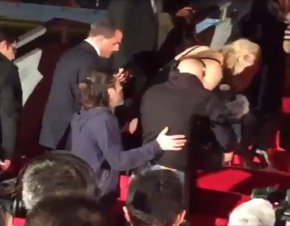 Актрисата за пореден път падна на червения килим. Това се случи на премиерата на Игрите на глада: Сойка-присмехулка - Част II в Мадрид. В интернет веднага се появи клип, на който група от антуража на Дженифър Лорънс се опитва да я спаси от падането, но без успех. Взимайки Оскара си през 2013 г. в категория Актриса в главна роля за Наръчник на оптимиста, актрисата толкова се развълнува, че забрави да ходи и полегна на стълбите към сцената върху дългата си бяла рокля. Залата стана на крака, за да я подкрепи. На следващата година тя отново се изложи, като се спъна и едва не събори движещата се пред нея дама на 86-ата церемония на Американската киноакадемия.