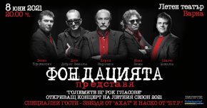 Супергрупата ,,Фондацията" ще изпълни за първи път пред варненска публика новия си проект ,,Фондацията представя Големите БГ рок гласове на 8 юни 2021 г. от 20:00 ч. в Летен театър Варна. В първия концерт за летния сезон, който музикантите очакват с нетърпение, специални гости ще бъдат вокалистът на група Ахат - Звездомир Керемидчиев и вокалистът на Б.Т.Р – Атанас Пенев. На 8 юни варненци ще се насладят на живо на песни, като "Черната овца", "Няма връщане назад", "Вкусът на времето", “Пак ще се прегърнем”, “Страхотен ден” и много други емблематични, любими български рок парчета, неостаряващи и актуални и днес. Концертът на “Фондацията” ще е първият, с който ще бъде открит и летният сезон 2021г. на Летен театър Варна, а от групата споделя, че няма търпение да се срещне с варненската публика. Супергрупата “Фондацията” планира още големи летни концерти у нас, които ще бъдат обявени съвсем скоро. Билетите за концерта на “Фондацията” на 8 юни във Варна вече са пуснати в продажба ексклузивно в мрежата на Ticketportal.bg. Цената им ще бъде от 25 до 30 лв. Могат да се закупят още на бензиностанции ОМВ, книжарници Booktrading, Office1Superstore, касата на Летен театър Варна и ДКС. При провеждане на събитието ще бъдат спазени всички законови мерки и препоръки във връзка с превенцията и борбата срещу COVID-19, както и процентното ограничение на допустимия брой зрители.