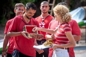 Последва нов рунд, в който по един представител на отбор трябваше да пренесе максимален брой здрави яйца за седем минути. Един срещу друг се изправиха най-атлетичните мъже от двата тима, а последвалата битка беше титанична, но и изключително спортсменска. Костадин от „Канатица“ мина като стрела по трасето и срази земеделеца Георги Георгиев от „Елбетица“. Безапелационната му победа предизвика сълзи от радост в червения тим. „В очите на моите съотборници виждам благодарност, но няма нужда никой да ми благодари, защото както аз допринасям, така и всеки един е важен. Не съм герой и нямам нужда да се правя на такъв. Много ми хареса цялата тежест да падне на моите плещи и да нося отговорност, и го правя с огромно удоволствие“, каза Костадин.