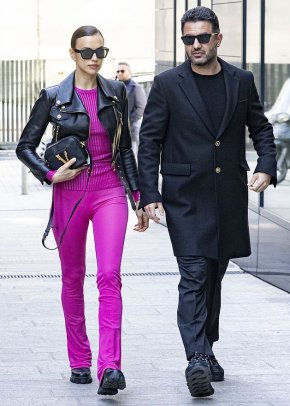 34-годишният супермодел изглеждаше зашеметяващо в прилепнал панталон в хитовия цвят за сезона – лилаво, блуза в същия нюанс, черно кожено яке и удобни черни боти на платформа. Тя беше прикрила част от лицето си зад големи черни слънчеви очила и крачеше към поредния си моден ангажимент в компанията на своя приятел Али Кавуси.