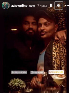 "Шебек, гледай!", така Иво Димчев се обърна към своя нов приятел Азис, става ясно от видео стори в социалната мрежа. Двамата показаха как кълчат кълки под звуците на етно хаус в столично заведение. Преди това изпълнителите се обявяват за бразилки, явно намеквайки за афинитета им към бразилските мъже, а не толкова за националната им принадлежност.