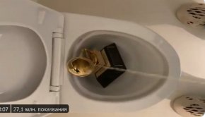 Изпълнителят пусна клип в Туитър, на който се вижда как уринира върху статуетката си.