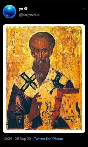 Суперзвездата и кандидат-президент на САЩ Кание Уест изненада феновете си в Twitter, като публикува икона на Свети Климент Охридски. Преди време Уест прие православната вяра, цялото му семейство също е християнско.