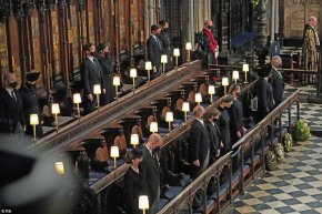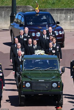 Децата на покойника - принц Чарлз, принц Андрю, принц Едуард и принцеса Ана, заедно с внуците принц Уилям, принц Хари и синът на принцеса Ана - Питър Филипс, следваха катафалката в процесията до параклиса Сейнт Джордж.