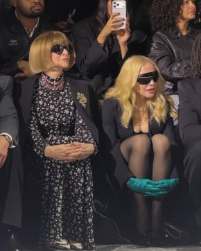 Мадона открадна шоуто на ревюто на Долче и Габана от модната седмица в Милано. Седнала до Анна Уинтур, също пенсионерка напоследък, след като се раздели с шефския пост във Воуг, и двете в черно, супер звездата на 80-те и 90-те години кимаше в такт с песента си ... Воуг от своите златни години, облечена в тоалет в стила на класическото и митично свое видео.