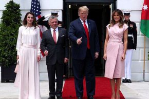 Мелания Тръмп покани на чай кралица Рания ал-Абдула от Йордания в Зелената стая на Белия дом. По-рано съпрузите им проведоха двустранна среща. Двете дами бяха избрали розови тоалети, роклята на Мелания от Proenza Schouler струва 3 950 долара. Рания бе с буза в по-светъл нюанс и широки бледо розови панталони. Това е вторият път в рамките на седмицата, когато първата дама на САЩ посреща кралица. Миналия вторник Мелания, на 48 г., бе на чай с испанската кралица Летисия. Кралят и кралицата на Йордания последно са били в Белия дом през април 2017 г.
