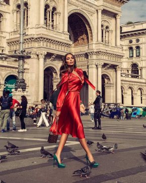 НиЛо се отдаде на шопинг в Милано, облечена в цветовете на България и Италия. Снимката на плеймейтката с рокля Red Elegance събра стотици харесвания във Фейсбук.
