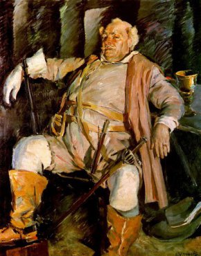 Илюстрация: Портрет на Кръстьо Сарафов като Шекспировия Фалстаф, нарисуван от Дечко Узунов
