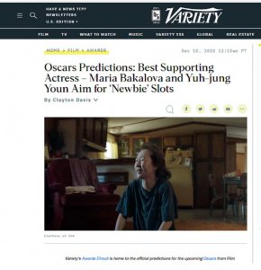 Суперавторитетното издание за кино и шоубизнес Варайъти направи прогноза, че българката Мария Бакалова, чиято звезда изгря в Борат 2, ще спечели Оскар за Най-добра поддържаща актриса. Според тях вероятен победител може да бъде й Юн Юх-джунг с американската драма Minari.