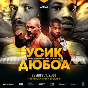 Александър Усик ще защитава своите световни титли – WBA, IBF, WBO и списание „Ринг“ - в тежка категория срещу британския претендент Даниел Дюбоа в събота, 26 август на живо по MAX Sport 2. Галавечерта ще се проведе в Тарчински Арена във Вроцлав, Полша и ще предложи още битката за международната титла в лека категория на WBO и срещата за сребърната титла в средна категория на WBC.