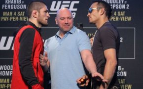 Тони Фъргюсън захапа шампиона на UFC в лека категория Хабиб Нурмагомедов преди техния мач на 18 април в Бруклин (САЩ), предава Sportal.bg.