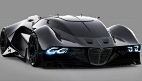 Lancia Ultra,изцяло черна двуместна кола с футуристичен дизайн, екзотични фарове и запазвайки емблематичната черна решетка.