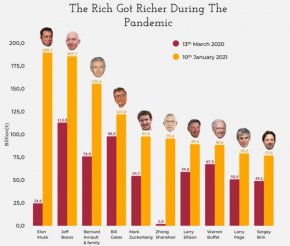 8 пъти по-богат стана шефът на Тесла Илон Мъск по време на пандемията, ставайки най-богатия човек в света, изпреварвайки с 0,7% изпълнителният директор на Amazon Джеф Безос.