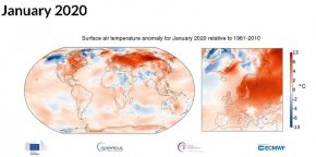 Само в Европа, януари 2020 г., е бил с 3,1 градуса по Целзий по-топъл отколкото е средната стойност за периода 1981 г. - 2010 г. Той е и най-топлият януари в глобален аспект, "макар и минимално по-топъл" отколкото е януари 2016 г.