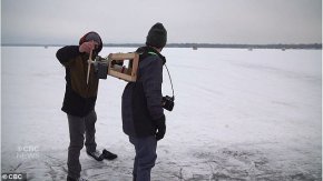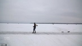 С пристегнатото към гърба му устройство като раница, Гибсън може да се придвижва през заледената река Отава със скорост до 40 км/ч.