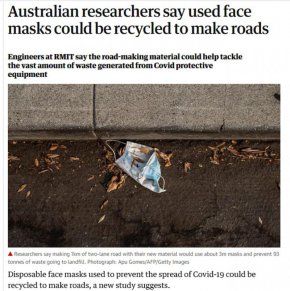 Изследователи от RMIT заявиха, че са разработили материал за строителство на пътища чрез комбиниране на маските за еднократна употреба и обработени строителни останки.
