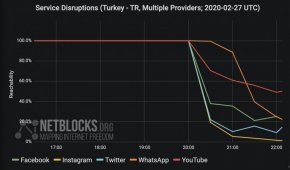 Интернет обсерваторията NetBlocks разкрива, че след събитията в Сирия, при които има кнфлект между турската и руската армия, Ердоган е блокирал всички социални мрежи в страната.