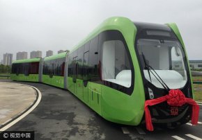 Трамвай, влак и автобус в едно. Това е новото превозно средство, изобретено в Китай, което не се движи по обичайните метални релси, а следва пунктирани бели линии, боядисани по пътя.