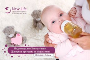 На 07 Март 2020 /събота/, от 11:00 до 16:00 часа – с предварително записан час, ще се извършват индивидуални безплатни консултации за донорски яйцеклетки в медицински център за репродуктивно здраве Ню Лайф, както и безплатни консултации на двойките с екипа на клиниката. Всички желаещи двойки е необходимо да заявят присъствие на тел. 032 /693 693 или на безплатен телефон 0800 13 006, където ще получат и пълна информация. При посещението си, всички желаещи ше имат възможност да се запознаят с донорската програма и да получат отговор на въпросите, които ги вълнуват от специален консултант и от екипа на клиниката. На място ще бъдат разяснени по-подробно условията, начина на избор на донор и всички необходими изследвания. Ню Лайф Специализиран Медицински Център по Гинекология (СМЦГ) е партньор на водеща верига от ин витро центрове в Европа, която разполага с криобанка за донорски яйцеклетки.