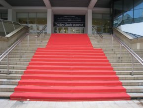 Червен килим има, но стълбите започват буквално от Кроазет, доста по-трудни са за качване от тези на голямата зала, така че актрисите не биха могли да стигнат до салона с причудливи тоалети. Някои, като Моника Белучи – церемониалмайсторката на тазгодишния фестивал, предпочитат да стигат до залата през страничния вход откъм самия фестивален Дворец, без да излизат на улицата. Там има ескалатори и всичко необходимо за придвижване с тоалет, тежащ килограми и струващ десетки хиляди евро и с бижута за много повече.