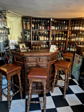 В мъничкото помещение на долния партерен етаж е съсредоточена голяма колекция вина. Всичките са български. И то главно от популярните изби Капатово и Юстина. Има даже искрящо в малки бутилки - бяло и розе, което може би е най-подходящо за сезона, в който влизаме и ще бъдем месеци наред. Става.