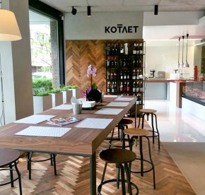 Котлет на ул. Нишава има оригинална концепция. Сред минималистичния дизайн, който е доста приятен, са комбинирани няколко неща. От една страна, както личи и по зоната за шоукукинг и красивата топла витрина, а също по елегантната маса с няколко стола, от заведението може да се вземе за вкъщи или да се хапне на място храна. Ние станахме почитатели на специалитета – дърпано свинско, толкова крехко и „на конци”, на пилешкия кебап и на другите кулинарни творения. От друга страна, това е и стилен месарски магазин – не е оксиморон, където предлагат говежди Ай Раунд, Херефорд, Блек Ангъс – бон филе и рибай, Томахоук стек и Ангъс бургер от Австралия, а също всякакви други меса и колбаси от висока класа. От трета страна, е и бутик за подправки. Можете да избирате например между червена, синя, различни видове хималайска сол и такава с трюфели. Или пък между сортовете испански зехтин и балсамико, от пастета иберико или различните салати. София имаше нужда от такова място и си го получи. Не на последно място, впечатляващи са и чудесното обслужване, и брандираните хартиени пликове.