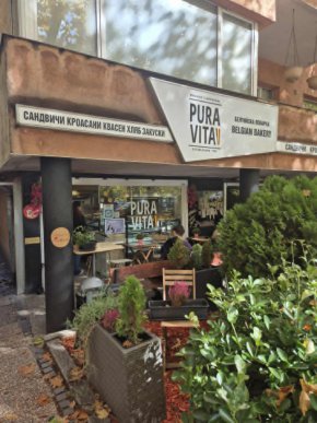 Речено - сторено, както се казва в приказките. В ранния слънчев вече следобед се озовах там, където мислите ме водеха от два часа. В мини дворчето с мини маси и мини столове хората хапваха ахуещите храни от заведението, чието име в превод звучи като "чист живот". А аз със съжаление съзрях, че не е останало кой знае какво, въпреки че момичетата зад щанда непрекъснато вадят новоизпечени тави от видното от входа помещение, където всичко се приготовлява. Нямах много време и реших да взема кроасан - златен стандарт за всяка френска, белгийска - както претендира тази, или българска пекарна. Нямаше прост, както му казват франсетата, та взех с шунка.