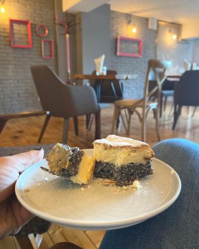 Лвовският сирник, който виждате на снимката, е точно това, което опитахме при първото си посещение в Цукерния Савенко. Цукерния значи сладкарница на украински, а заведението е заело позиции на скътаната улица Сердика на гърба на Министерския съвет още преди войната. Но не много преди нея. Домакините казват, че е на година. Първото, което прави впечатление е уютът, който на втория етаж на сладкарницата е гарантиран и от огнище.