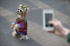 Пикът в програмата на тазгодишната седмица на модата в Милано беше малък териер, облечен в Гучи. Кучето събра тълпи от минувачи и гости на събитието.