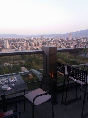Втората най-хубава гледка в София, след тази от панорамата на хотел Сенс на жълтите павета, се открива от върха на небостъргача зад НДК – там се намира най-модното в момента заведение The View. Като стана дума за сравнение със Сенс, две много важни черни точки на новото място, за разлика от по-старото намерихме веднага. Първата е дизайнът – в The View той е липсващ или хайде – твърде елементарен и неубедителен, комбиниран с миризмата на хотел в Слънчев бряг. Иначе казано евтинее. Нищо общо с европейския шик на Сенс. Втората черна точка е обслужването. Има една симпатична келнерка, но останалата част от персонала: