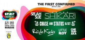 Тазгодишното издание на най-мащабното музикално събитие на годината, SPIRIT of Burgas, ще посрещне за шести пореден път едни от най-нашумелите и горещи имена от световната музикална сцена. Пъстрата програма ще представи разностилни артисти от почти всички музикални жанрове – реге, хип-хоп, дръм енд бейс, пънк, соул, хардкор, дъб-степ и мн. др. Сред първите имена, които разкриха организаторите, са горещото поп-рап дуо RIZZLE KICKS, бисера SELAH SUE, CHASE & STATUS DJ Live, реге легендата LITTLE ROY, фестивалните зверове CHE SUDAKA и експлозивните ENTER SHIKAR. Лимитиран брой промоционални билети за SPIRIT of Burgas 2013 са вече в продажба в мрежата на Евентим на цена от 99 лв. Още с първото си появяване на родна земя двамата британци, Saul Milton и Will Kennard, завладяха сърцата на хиляди. CHASE & STATUS бяха една от големите "изненади" на SPIRIT of Burgas 2012, което вероятно е причината да са едно от най-исканите имена от феновете за 2013-та! Е, остават само няколко месеца до завръщането им на главната сцена, отново в компанията на MC Rage.