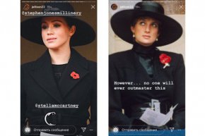 Меган Маркъл и други членове на кралското семейство присъстваха на церемонията в чест на Деня на възпоменанието в Лондон. За събитието съпругата на принц Хари избра тъмносиня монохромна визия - палто с колан на Стела Макартни и широкопола шапка на Stephen Jones. Образът на Меган се оказа много подобен на един от визиите на принцеса Даяна. Сходството бе отбелязано от британския журналист Джо Алисън, която публикува снимки на херцогинята на Съсекс и принцесата на Уелс в своя Инстаграм, като подчерта, че едва ли някой ще успее да надмине Даяна. Преди няколко години Кейт Мидълтън също се довери на безупречния вкус на Лейди Ди по същия повод.