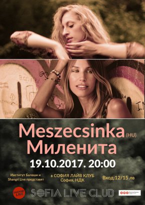 Една от най-самобитните унгарски формации, добре позната и обичана у нас – Meszecsinka, ще гостува у нас за съвместен концерт с лъчезарната Миленита и нейния бенд в Sofia Live Club. Тази комбинация никак не е случайна: поводът е официалният Ден на българо-унгарската дружба 19 октомври. Именно на тази дружба рожба е проектът Meszecsinka – унгарската група с българско име. В празничната вечер, в една от най-горещите концерти локации в столицата България среща Унгария в лицето на две едновременно нежни и диви жени: Миленита и Анамари. Всяка от тях с ярка индивидуалност и изключителна харизма, всяка от тях начело на формация, единствена по рода си и невъзможнa за поместване в стилови рамки. Очаровала феновете на Беглика 2015 и гостуваща често със самостоятелни гигове у нас, Meszecsinka се радва на непрекъснато увеличаваща се фенбаза сред българската публика. Нейно ядро са Аннамария Ола (вокали, флейта) е вокал на Fokatelep (хедлайнер на Беглика 2012), а Емил Билярски (клавир, китара) 15 години свири в психеделичната Korai Öröm, добре известна и у нас. Meszecsinka е формирана от двамата през 2009 г. Свирят из цяла Европа, САЩ и Канада, заснемат клипове на Червения площад и на българското Черноморие. Актуалният им албум Awake In A Dream е наречен от пресата“гениален“, „world music албум на годината“ и е горещо приет от публиката в различни страни. Какво е Meszecsinka? Вместо опити да определим стила им, ето няколко отзива от международната преса: