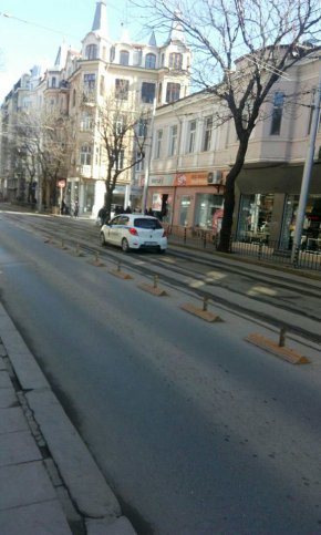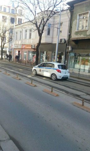 Полицейски автомобил мина необезпокояваноq без включен никакъв звуков и светлинен сигнал в насрещното на улица Алабин в центъра, където е разрешено само на трамваите да преминават. Изниква въпросът защо обикновените шофьори да спазват закона, след като органите на реда не го правят!