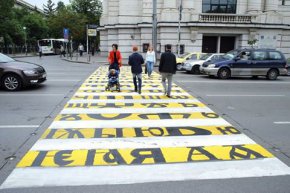 Пешеходната пътека, изписана на кирилица и глаголица по случай Деня на славянската писменост и българската култура, е на бул. „Васил Левски“ при Софийския университет и Народната библиотека „Св. Св. Кирил и Методий“. Проектът осъществихме заедно с Емил Джасим (Emil Jassim) и неговите приятели, на които сърдечно благодаря. Това написа във Фейсбук кметът на София Йорданка Фандъкова.