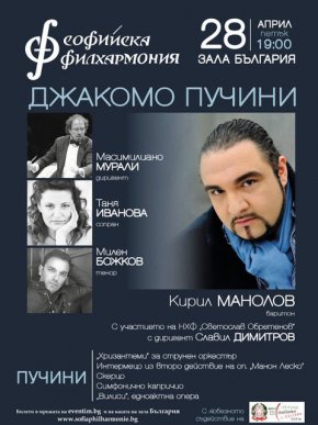 Специално за концерта в София ще пристигне един от най-видните европейски оперни диригенти - Масимилиано Мурали. Заедно със софийските филхармоници и НФХ Светослав Обретенов на сцената ще бъдат неповторимият световен баритон Кирил Манолов и сценичните му партньори - сопраното Таня Иванова и тенорът Милен Божков.