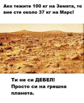 Ако тежите 100 кг на Земята, то вие сте около 37 кг на Марс!