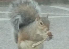 Сара Кларк тъкмо взема своето меню за вкъщи от Buffalo Wild Wings в Уестърли, Род Айлънд, когато забеляза катеричка как гризе пилешко крилце на тротоара.